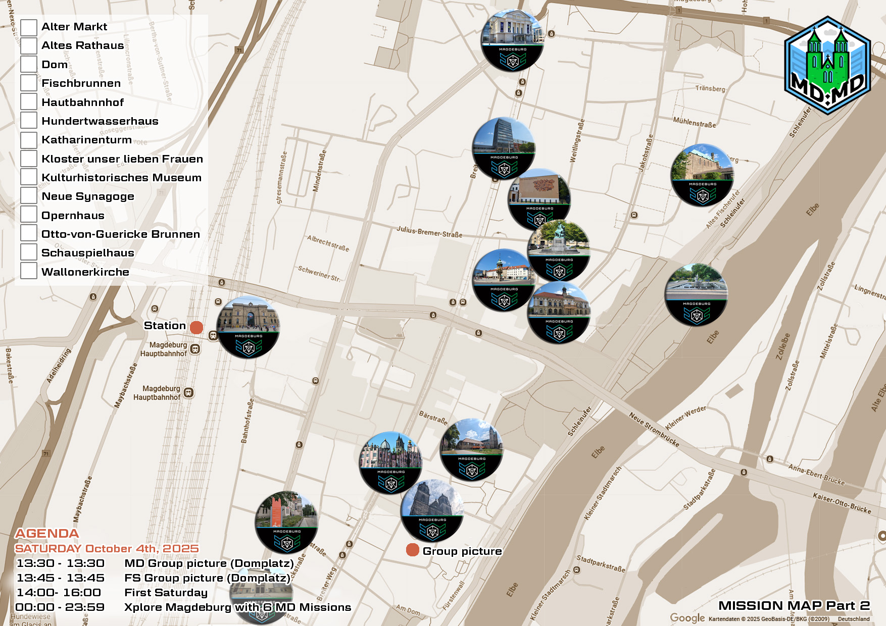 Agents, we want to discover Magdeburg on Saturday October 04th, 2025. We will provide high quality missions to explore the city on foot together.